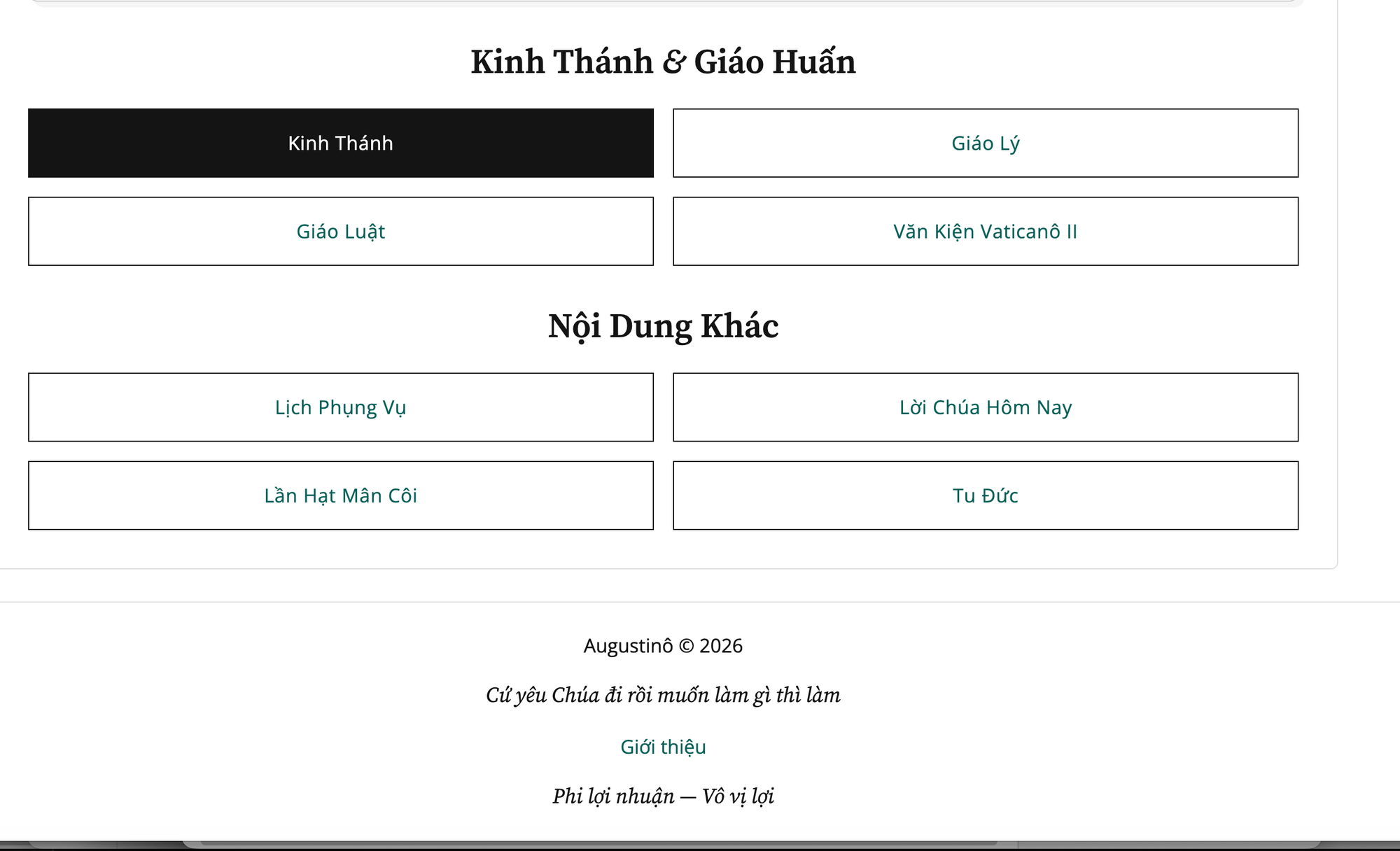 Sức hút của Augustino.net nằm ở khả năng hệ thống hóa kiến thức một cách đồ sộ và bài bản. Đây không đơn thuần là một trang tin, mà là một kho lưu trữ số hóa cực kỳ giá trị về Kinh Thánh, Giáo lý và Giáo luật. Đối với những người đang tìm hiểu về đạo hay những tín hữu muốn củng cố nền tảng đức tin, trang web này giống như một "ngôi trường trực tuyến". Từ việc tra cứu các bản văn Cựu Ước, Tân Ước cho đến việc tìm hiểu các văn kiện quan trọng của Công đồng Vaticanô II, tất cả đều được trình bày một cách khoa học, tinh tế và rất dễ tiếp cận.