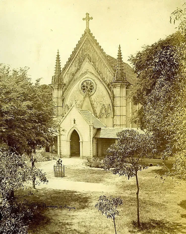 Trái tim của toàn bộ khuôn viên chính là ngôi nhà nguyện cổ mang đậm phong cách Gothic phương Tây, một tuyệt tác được khánh thành vào năm 1871. Với những đường gân vòm uốn lượn cao vút và hệ thống cửa kính màu rực rỡ, không gian bên trong nhà nguyện luôn mang một vẻ huyền ảo, tĩnh mịch.
