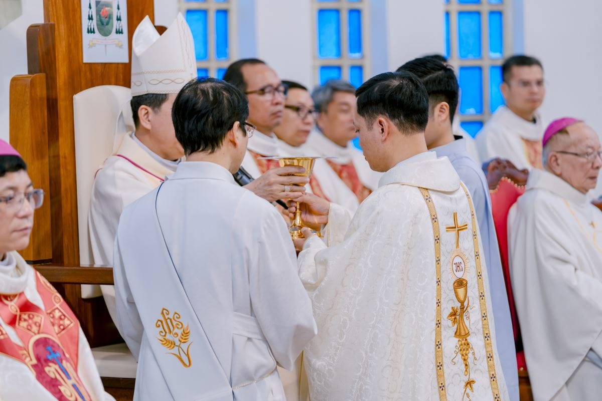 Sau phần nghi thức đặt tay, xức Dầu Thánh và trao chén thánh, 19 tiến chức chính thức trở nên Linh mục của Chúa Kitô, gia nhập hàng tư tế trong tinh thần hiệp thông và phục vụ.