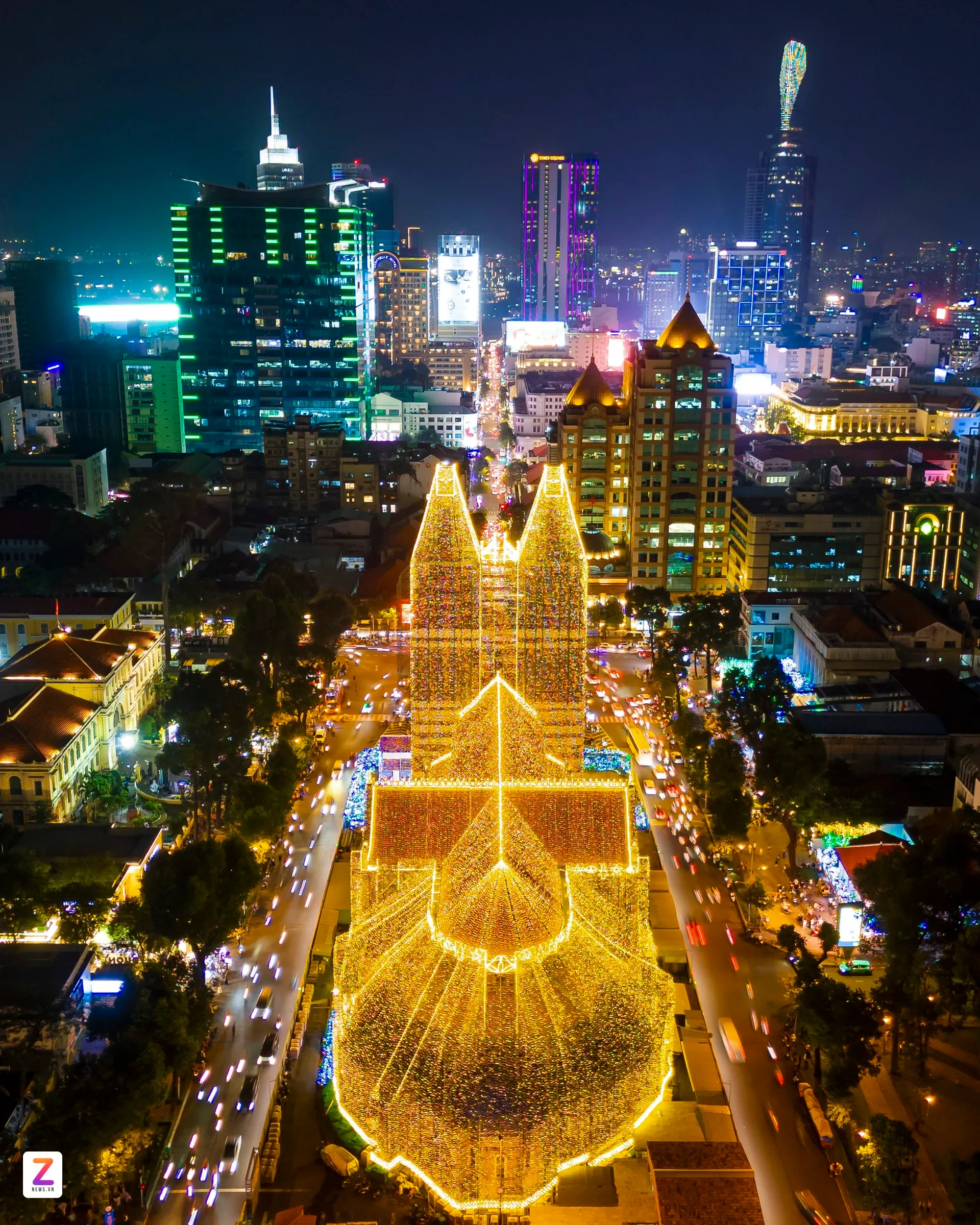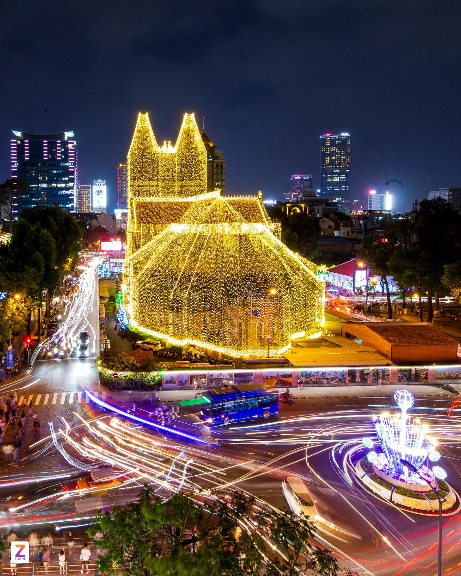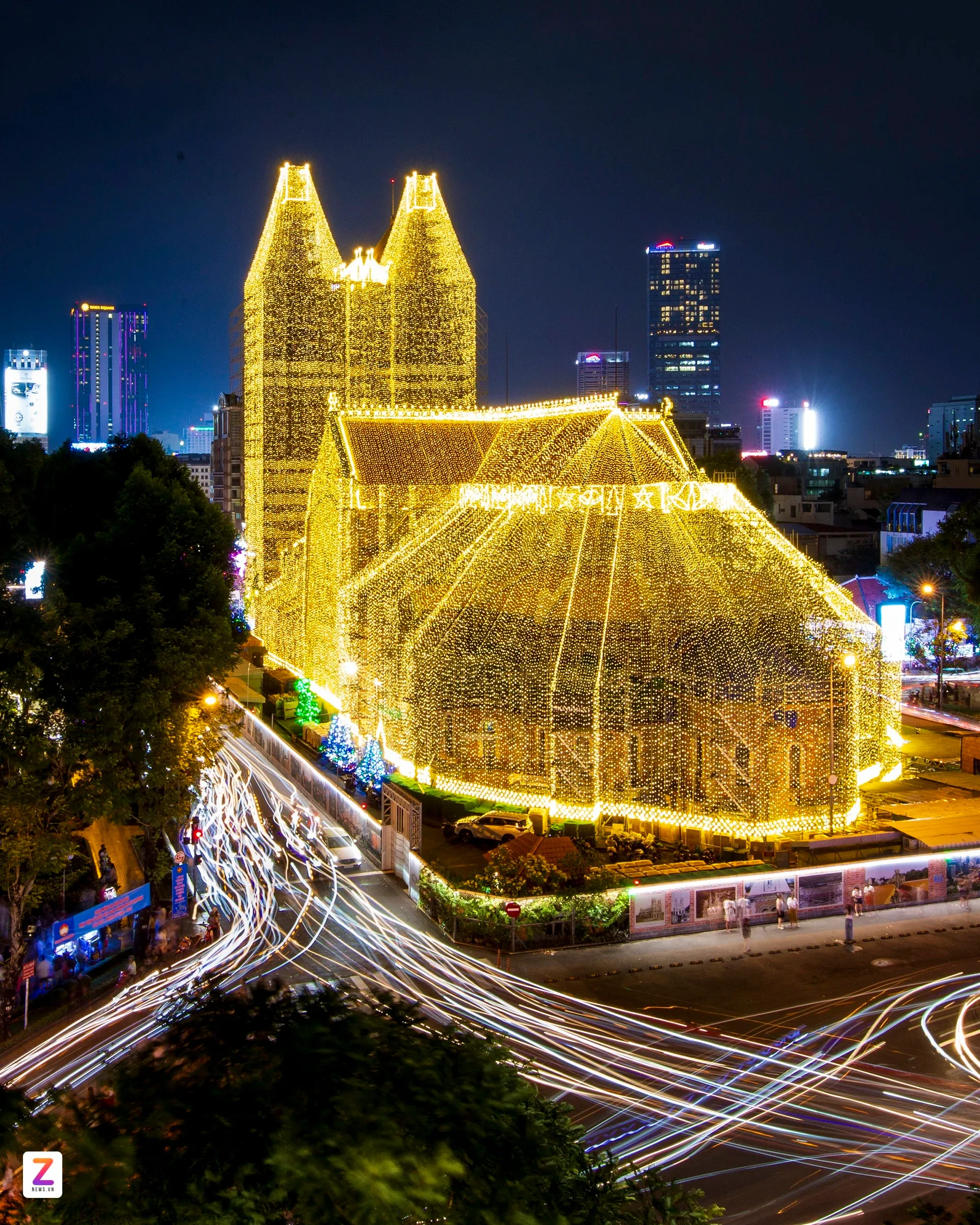 Sau nhiều ngày thi công, nhà thờ Đức Bà Sài Gòn (phường Sài Gòn, TP.HCM) được "khoác áo mới" với dàn đèn LED rực rỡ, tạo nên vẻ đẹp lung linh huyền ảo khi đêm xuống. Linh mục Ignatio Hồ Văn Xuân, Tổng Đại diện của Tổng Giáo phận TP.HCM, Trưởng ban trùng tu nhà thờ, cho biết hệ thống đã được lắp đặt hoàn thiện và vận hành thử trong những ngày đầu tháng 12. Năm nay, số lượng đèn tăng gấp đôi so với dịp Giáng sinh trước, bổ sung nhiều họa tiết như quả địa cầu, ngôi sao, quả chuông dọc mái ngói; trên hai tháp kẽm có thêm đèn LED tạo hình cây thông. "Việc lắp dàn đèn LED để tạo không khí ấm áp dịp Giáng sinh và tạo điểm nhấn cho người dân, du khách chiêm ngưỡng".