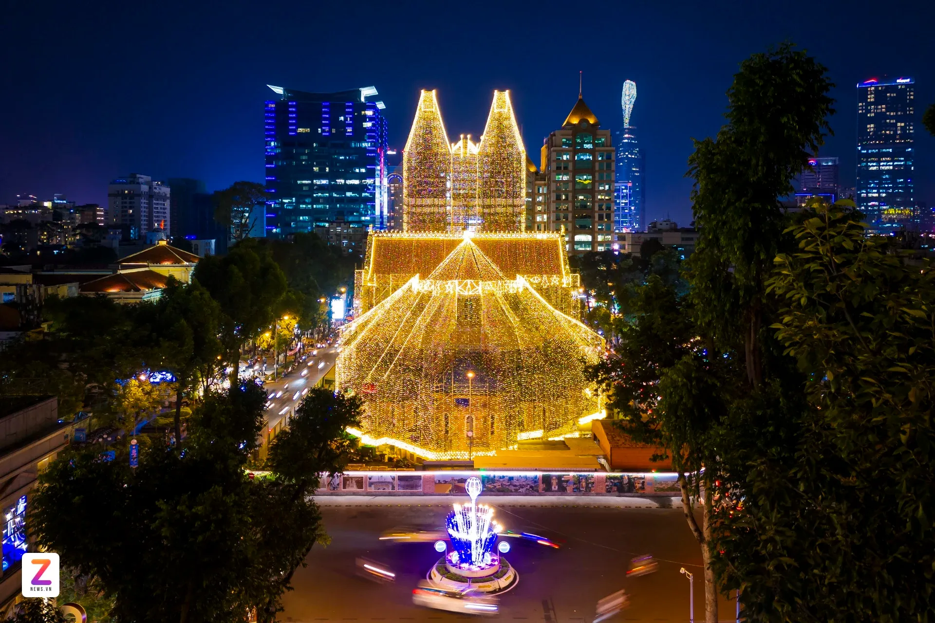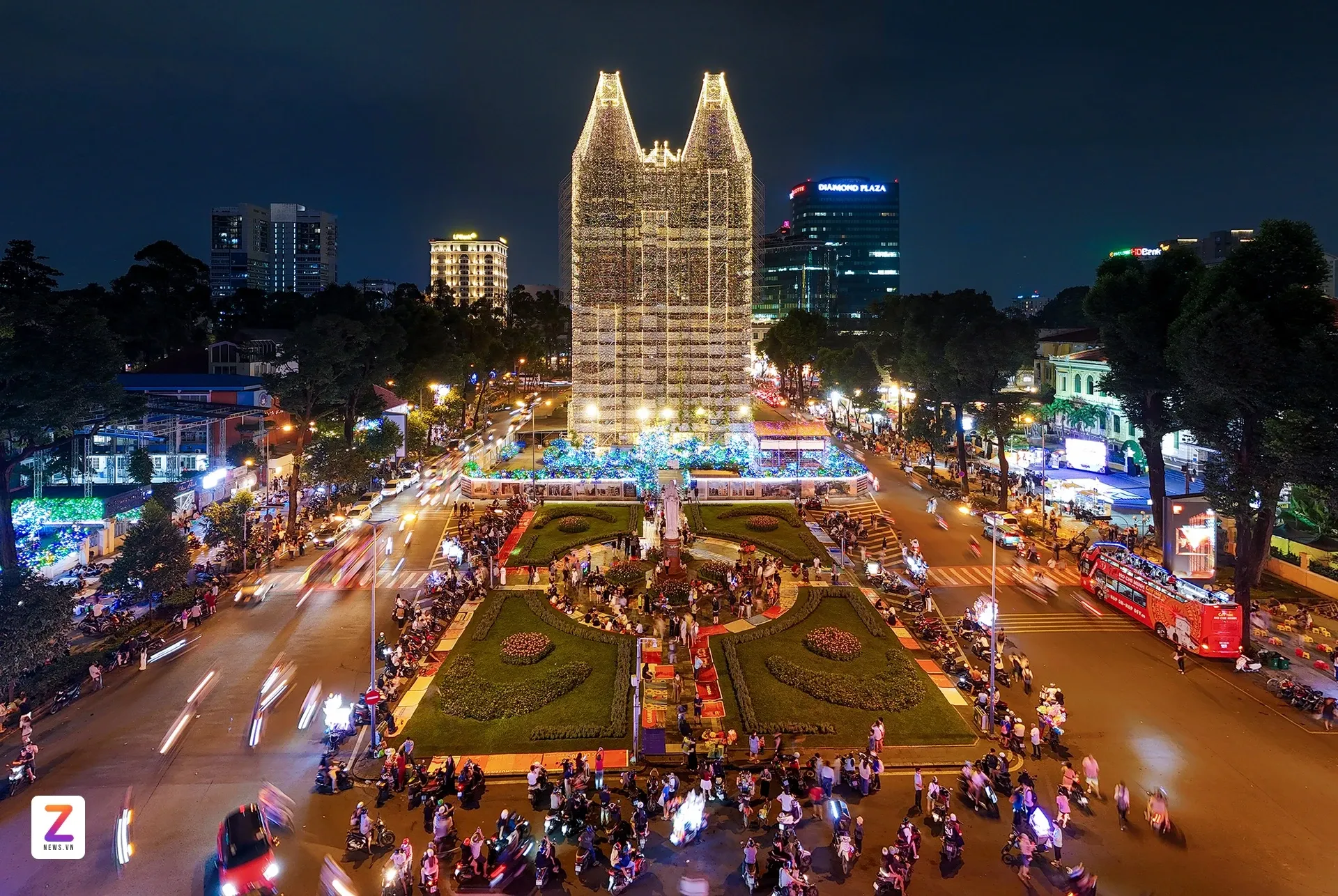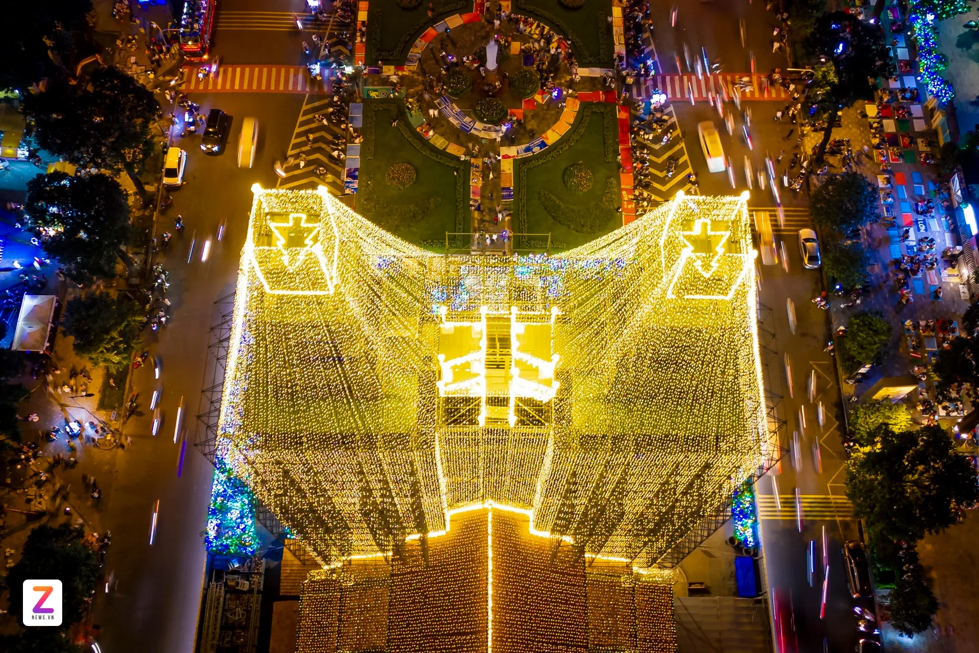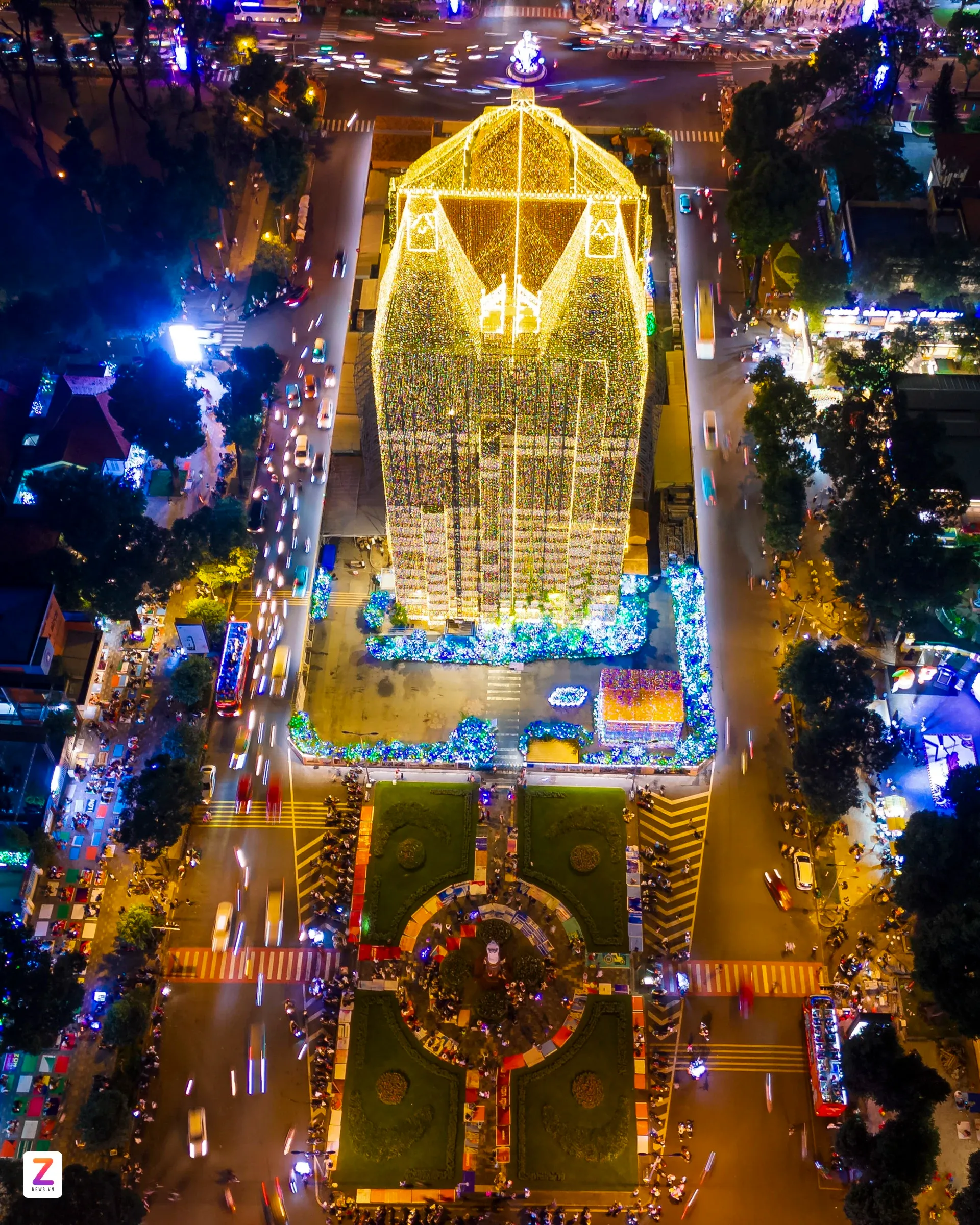 Sau nhiều ngày thi công, nhà thờ Đức Bà Sài Gòn (phường Sài Gòn, TP.HCM) được "khoác áo mới" với dàn đèn LED rực rỡ, tạo nên vẻ đẹp lung linh huyền ảo khi đêm xuống. Linh mục Ignatio Hồ Văn Xuân, Tổng Đại diện của Tổng Giáo phận TP.HCM, Trưởng ban trùng tu nhà thờ, cho biết hệ thống đã được lắp đặt hoàn thiện và vận hành thử trong những ngày đầu tháng 12. Năm nay, số lượng đèn tăng gấp đôi so với dịp Giáng sinh trước, bổ sung nhiều họa tiết như quả địa cầu, ngôi sao, quả chuông dọc mái ngói; trên hai tháp kẽm có thêm đèn LED tạo hình cây thông. "Việc lắp dàn đèn LED để tạo không khí ấm áp dịp Giáng sinh và tạo điểm nhấn cho người dân, du khách chiêm ngưỡng".