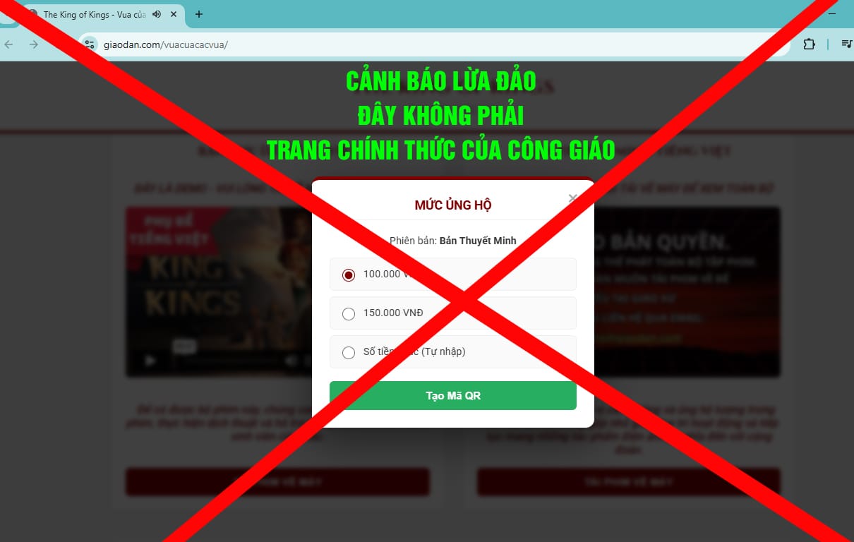 Những ngày gần đây, trên không gian mạng xuất hiện một số website, fanpage và trang mạng xã hội tự nhận là “trang tin Công giáo”, “blog giáo dân” đã đăng tải, chia sẻ hoặc dẫn liên kết xem phim Vua của Các Vua (The King of Kings) trái phép. Đáng chú ý, các nội dung này thường được kèm theo những lời kêu gọi mang màu sắc đạo đức như: “không cần ra rạp vẫn xem được”, “vì con cái”, “vì đức tin”, thậm chí có nơi còn gợi ý “ủng hộ” thông qua mã QR.