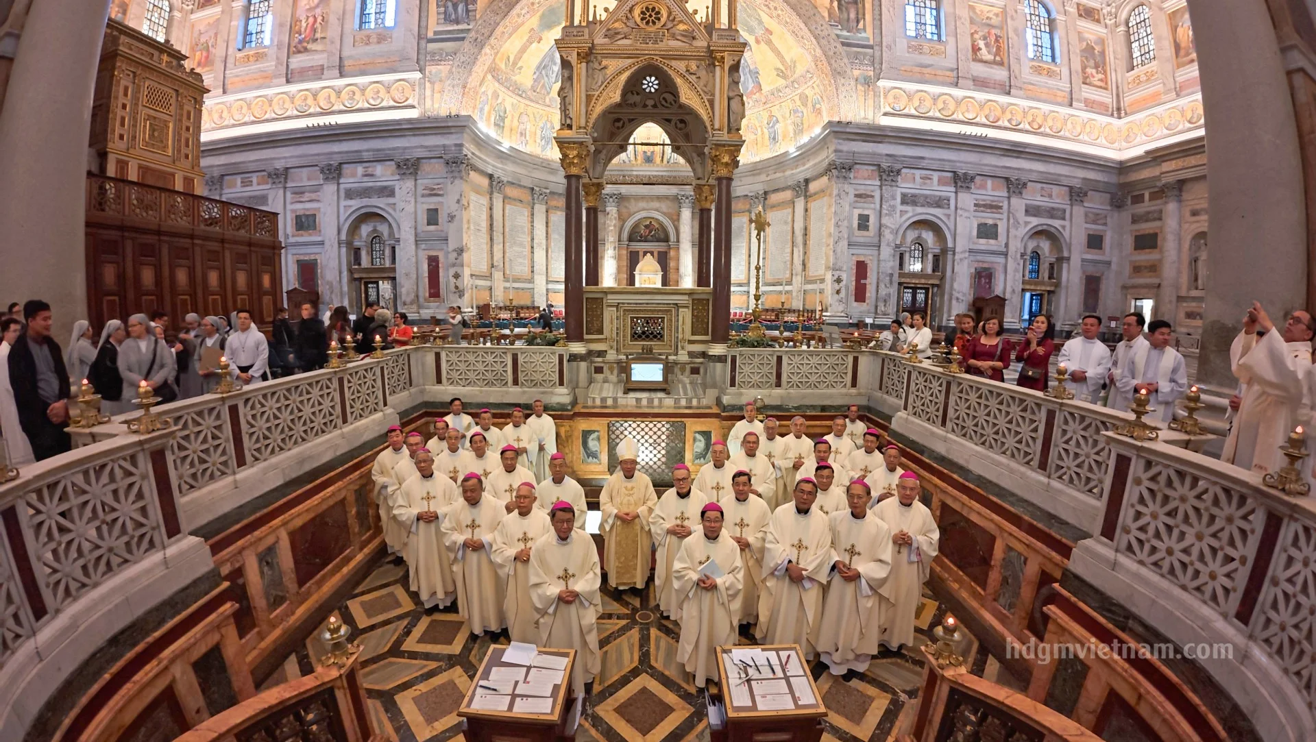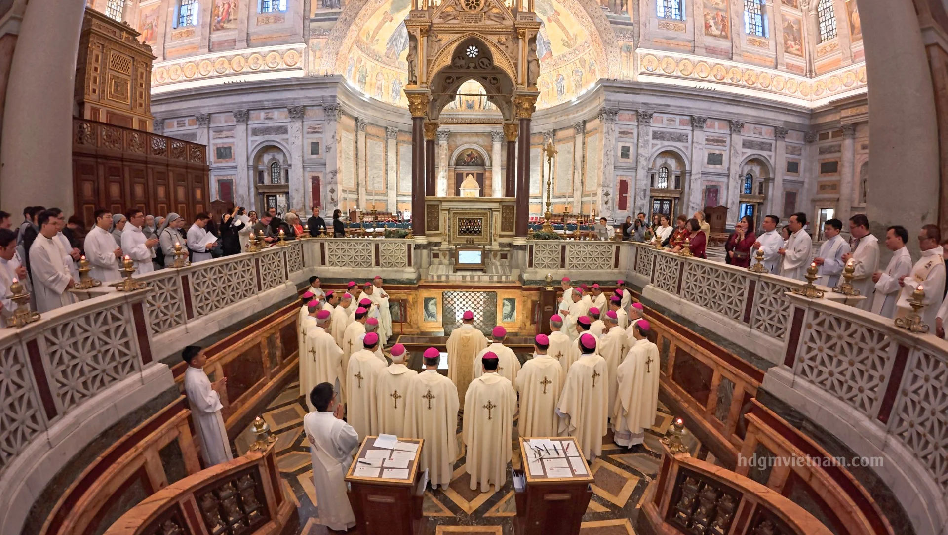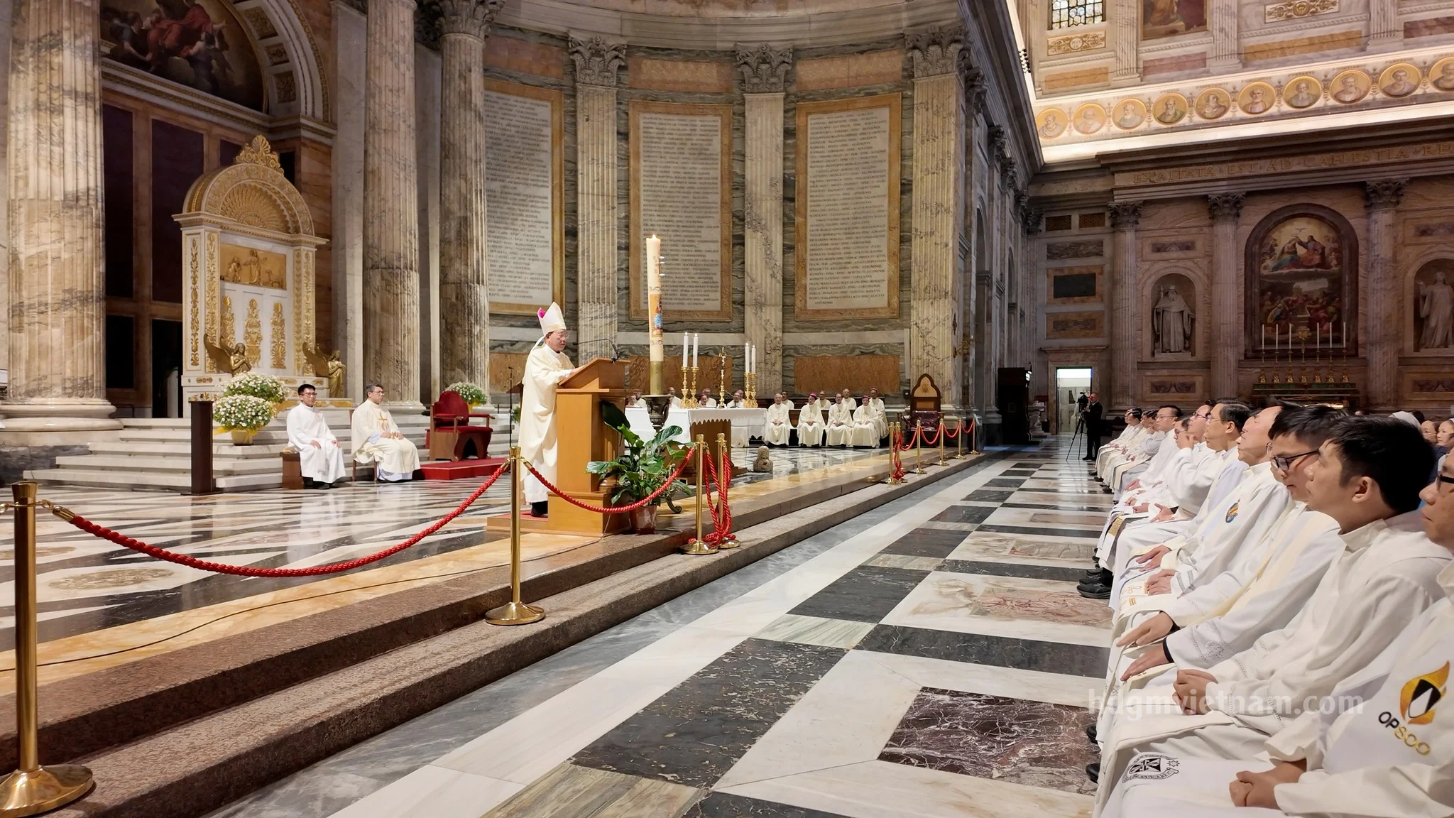 Buổi chiều, Đức Tổng Giám mục Giuse Vũ Văn Thiên, Phó Chủ tịch HĐGMVN, chủ tế Thánh lễ, cùng với quý Đức Giám Mục và đông đảo linh mục, tu sĩ Việt Nam đang theo học hoặc đang phục vụ tại Rôma. Trong Thánh lễ, Đức Tổng Giuse mời gọi cộng đoàn cảm nhận hồng ân đặc biệt khi được cùng hiện diện và dâng lễ ngay tại trái tim của Giáo hội hoàn vũ, nơi cội nguồn của đức tin tông truyền.