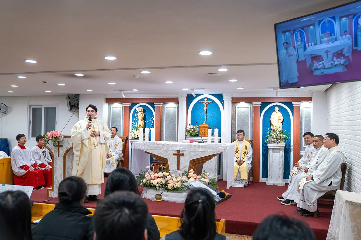 Thánh lễ được cử hành tại cộng đoàn Việt Nam mà Cha Giuse đồng hành trong hành trình ơn gọi của cha tại Đại Chủng viện Incheon, nơi trước đây cha đã theo học và được đào luyện trong những năm tháng quan trọng của đời tu. Việc cha trở lại nơi này để dâng Thánh lễ Tạ Ơn không chỉ là một sự kiện mang ý nghĩa cá nhân, mà còn là lời chứng sống động cho tình yêu trung tín của Thiên Chúa trong suốt hành trình ơn gọi.