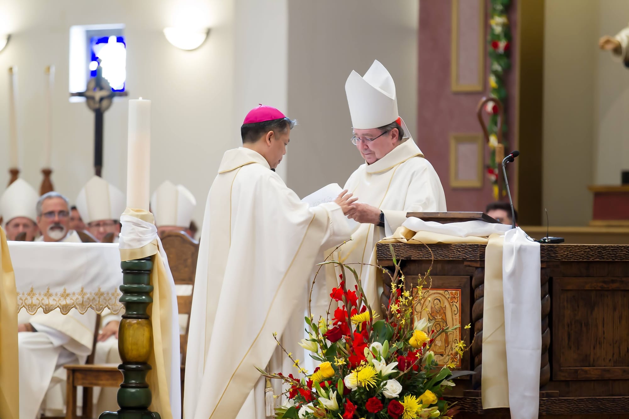 Thánh lễ quy tụ đông đảo tín hữu, đặc biệt là cộng đoàn Công giáo Việt Nam tại Arizona, cùng các linh mục, phó tế, tu sĩ nam nữ, đại diện các tổ chức như Hiệp sĩ Columbus, Dòng Malta và Dòng Kỵ sĩ Thánh Mộ Giêrusalem. Đức Hồng y Christophe Pierre, Sứ thần Tòa Thánh tại Hoa Kỳ, đã công bố Sắc lệnh bổ nhiệm được loan báo trước đó tại Washington, D.C. ngày 19/12/2025.
